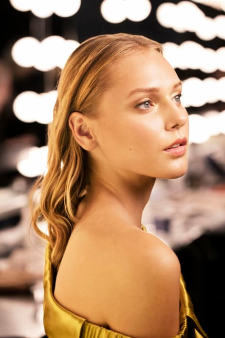 Bright Amalfi Coast colors, polka dot prints, and gold shimmer inspired the fluid, asymmetrical silhouettes seen in Hellessy designer Sylvie Millstein’s latest collection.“Hair was prepped with new Aveda Damage Remedy™ Split End Repair (launching September 24) that binds split ends back together for beautiful, touchable hair,” said Reyman. “Then, with a couple of quick poofs of Aveda Shampure™ Dry Shampoo we were able to absorb excess oils and give hair a flirty, matte look – perfect for the runway.”